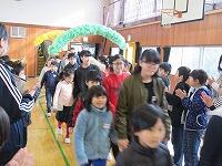 1年生から5年生まで、みんなでアーチをつくって6年生を送りました。