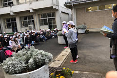 昼休みに、校庭から太鼓と応援団の声が響きました。