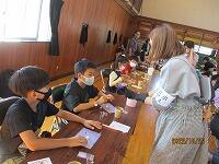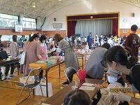 とても盛況でした。思い思いの缶バッチを役員さんの指導のもと、頑張って作成していました。
