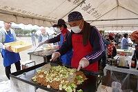さんきっずの演舞 焼きそばを焼く茂呂先生