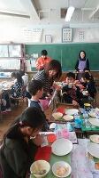 また、今日の給食は栃木東中3年3組のリクエスト献立でした。アップルパン、豚肉とさつまいものかりん揚げ、ほうれん草とコーンのソテー、ミネストローネでした。ちょうど3年生に兄弟がいる、といっていた6年生がいました。そろって卒業ですね
