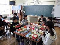 もうすぐ卒業する6年生が、校長室で校長先生や職員室の先生たちと会食をします。校長室で給食を食べられる最初で最後の機会です。最初はとても緊張した様子でしたが、途中から笑い声も聞こえてきて、1人1人校長先生と楽しくお話ができたようです。卒業までに6年生全員会食する予定です