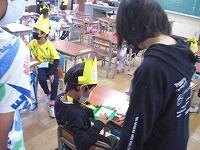 1年生の喜んでいる姿を見て、6年生はうれしそうでした。