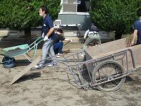 校庭では、トラックに積み、運ぶのも、砂をならすのも、やってくださいました。