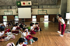 本日は、体育館にて、音楽鑑賞会を実施しました。4・5・6年生が4校時、1・2・3年生が5校時と、分散して実施しました。