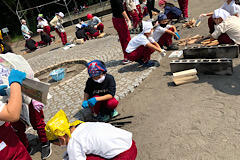 暑い中でしたが、写真の家の先生のお話をしっかり聴き、杉板焼き開始です。