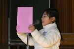 国歌斉唱の後、2年生2名が、2学期を振り返った作文を発表しました。