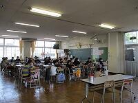 1年生は、1階の教室から、2階の第一音楽室、特別活動室へ避難しました。