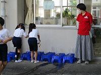子どもたちは、今日も元気いっぱい。お楽しみ給食の時間。どのクラスもしっかり感染症対策をして、静かに配膳しています。