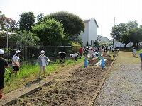 3年生の教材園手入れの様子です。3年生が一生懸命草むしりをして、教材園がだいぶきれいになりました。