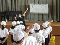 6年生全員が、新清掃班でスムーズに活動できるようにするための会議です。担当の先生から、細かな清掃のやり方を聞きました。今までは、クラスや学年ごとの清掃でしたが、いよいよ縦割り班(1~6年生)での清掃がスタートします。