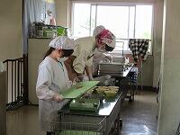 今日から来られた教育実習の先生も、配膳を頑張ってくれています。