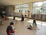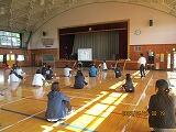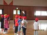 平均台を、横向きで歩くのはなかなか難しいです。平均台から落ちないように慎重にバランスをとって歩いています。集団のきまりを守って、取り組んでいます。