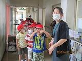 自分から進んで「並んでください」の合図をしているお子さんがいて感心しました。