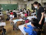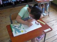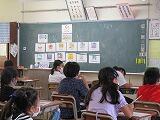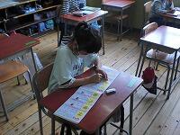 漢字の学習。みんなで新しく習った漢字を書く練習をしています。