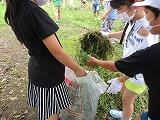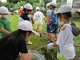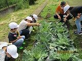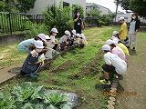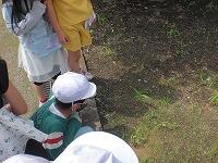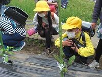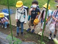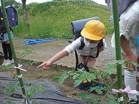 教材園で、青い実(ミニトマト)ができたのをみつけた2年生。