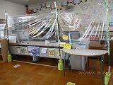 感染症対策として、貸し出し前にビニールの間仕切りを作り、置きました。