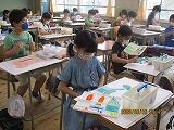 それぞれの友達の作品の良さを感じ取り、カードに記入しています。