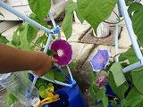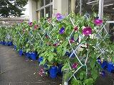 1年生の朝顔・・・どの鉢も、美しい花を咲かせています。