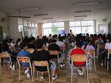 密を避けるために、一斉には集まらず、各クラスにてあらかじめ作っておいた講話の動画を視聴しました。