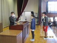 各クラスの代表児童が、校長先生から修了証を授与されました。