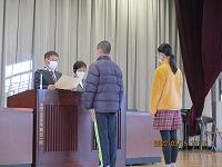 最後に退会されるお二人のPTA本部役員様に、PTA会長様から感謝状が贈られました。