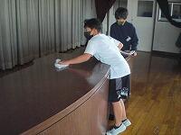 感染症対策で楽器を消毒してから、引き継ぎました。