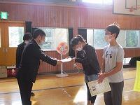 その後、表彰を行いました。体育館から各クラスへオンラインで様子を伝えました。