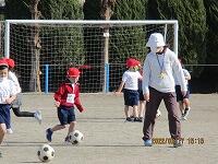 冷たい風の中ですが、みんな夢中でボールをけっています。