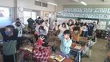 代表の児童が、6年生の教室メッセージカードを届けました。
