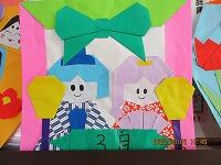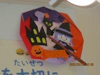 児童の作った折り紙作品が飾られ、みんなの目を引いています。