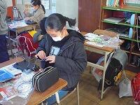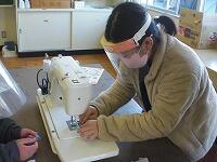 感染症対策として、一回一回ミシンをアルコール消毒綿で拭きながら活動しました。