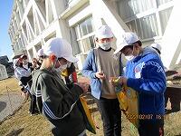 給食委員が、学校の代表として、代表の調理員さんに、お手紙とお花を贈りました。