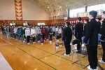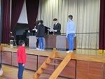学校では、オープンタイムに、卒業式前の最後の全体練習を行いました。
