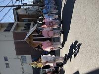 いよいよ岡田記念館を出発です。お侍さんの後に、子どもたちが続きます。