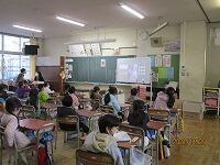 4年生が、直接校長先生からお話を聞き、その様子の映像を各教室に流しました。
