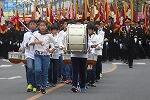 6年生鼓笛隊が市消防団分裂行進を先導行進しました。