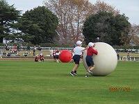 キックベースのゲームで盛り上がっています。時折歓声が聞こえました。