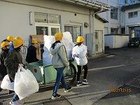 ボランティア委員会の児童が、協力してアルミ缶を集め、アルミ缶置き場まで持っていきました。