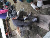 うずま焼の毛塚先生 親子でお皿に絵を描きます