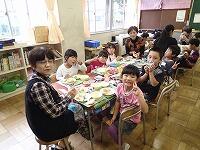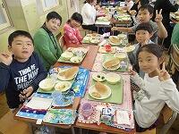 1、2年生にお孫さんがいる、おじいさん、おばあさんに来ていただき、子どもたちと一緒に給食を食べていただきました。