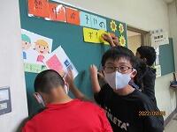グループごとに、紙芝居や本の読み聞かせの練習をしていました。クイズの〇付けもしていました。