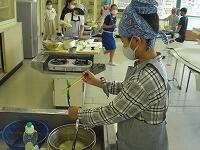 ほうれん草のおひたしを作りました。1組と同様、感染症予防のため、1人ずつの調理です。