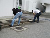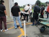 側溝からかきだした泥などは、一輪車などで、泥を置く場所へ運んでくださいました。