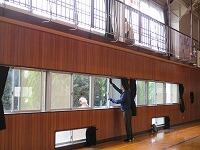 昇降口の窓も、体育館の窓も、その他の窓もみんなピカピカです。