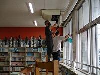 室内では、冷房機の清掃や、窓ガラス、トイレなどの清掃など、普段子どもたちの手に届かないところも、ピカピカにして下さいました。