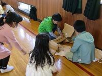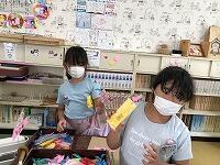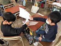 試行錯誤しながらつくったおもちゃを1年生に楽しんでもらえるようにと、やさしく説明したり、一緒に喜んだりしている2年生たちは、お兄さん、お姉さんの顔でした。
