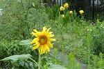 今朝の校庭巡回中、霧雨とクモが作り上げた美しい造形と、夏の風物詩である花を咲かせたヒマワリに出会うことができました。
