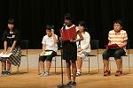 その後、27日の朗読フェスティバルの本選に出場する6名の朗読と、5年生全員による群読の発表を行いました。