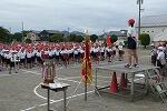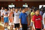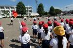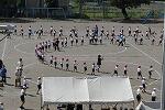 各育成会ごとに集合して整列し、あいさつの後、運動委員児童を手本として、ラジオ体操第1と第2を行いました。
